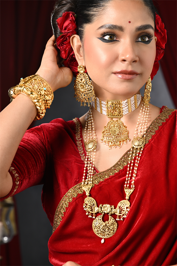 What defines this traditonal jewellery is its intricate craftsmanship. Be it filigree work, bold engravings, or storytelling motifs these pieces go far beyond beauty, offering a glimpse into the soul of Bengal’s artistry.