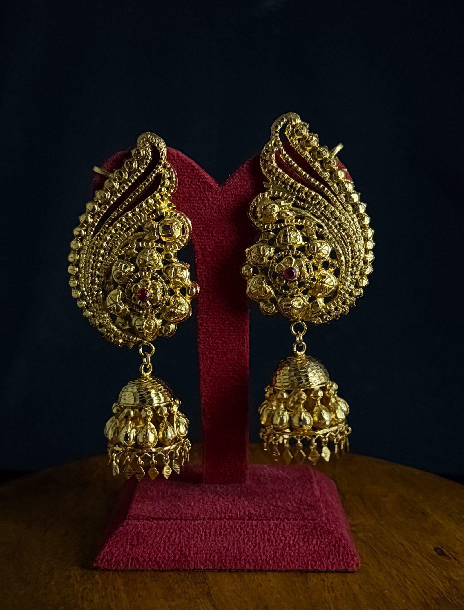 Traditional Full Kan Earrings are a beautiful expression of Bengal’s rich jewellery heritage, designed to capture elegance in every detail. Inspired by age old craftsmanship, these earrings feature the signature “Full Kan” style that gracefully covers the ear, creating a bold yet refined look.Expertly crafted with intricate patterns, each piece reflects the artistry of skilled hands where traditional motifs meet a timeless aesthetic. The design carries a vintage charm, making it perfect for festive occasions, weddings, and cultural celebrations.