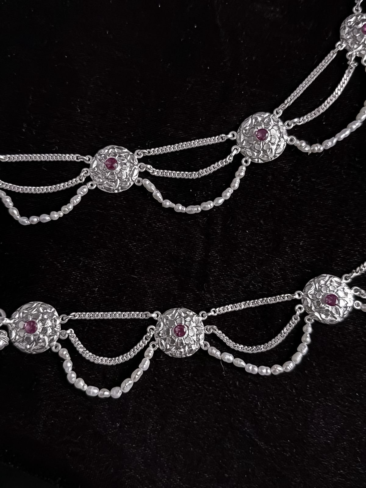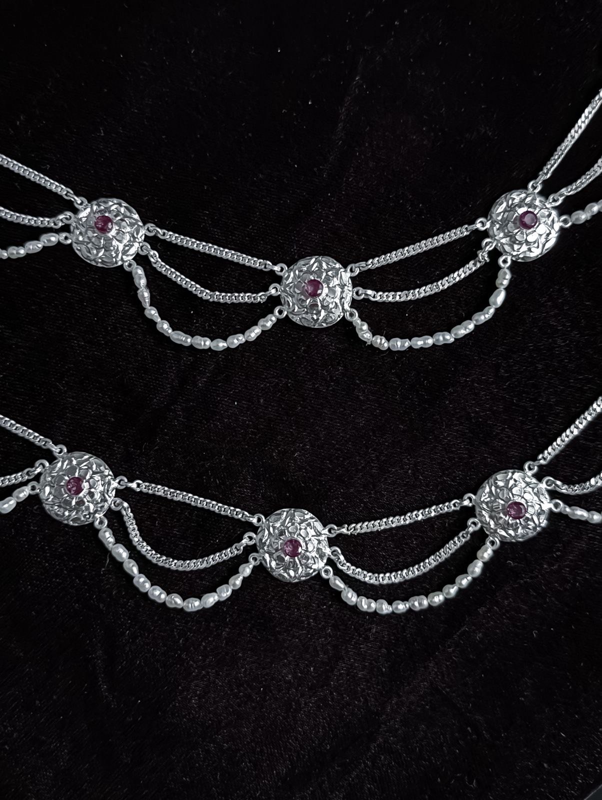 The Rice Pearl Silver Payel is a delicate celebration of Bengal’s heritage craftsmanship. Handcrafted in pure silver and adorned with tiny rice pearls, it brings a soft, graceful rhythm to every step. Each strand reflects timeless Bengali artistry, blending simplicity with soulful elegance. Lightweight and versatile, this payel is perfect for everyday charm or festive radiance. Its subtle shimmer enhances your natural beauty, making it more than an ornamentit’s a gentle reminder of culture, tradition, and feminine grace. A true treasure for the modern woman who values heritage jewellery of Bengal in its most refined form.